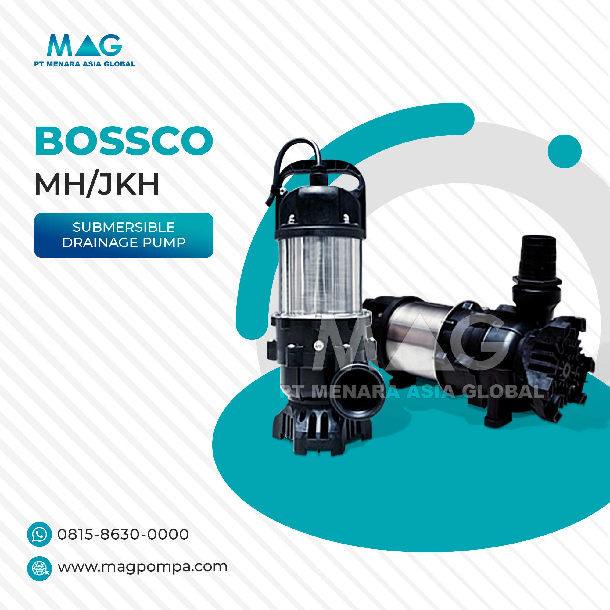 Pompa Bossco MH Series merupakan pompa submesible atau pompa celup yang dapat digunakan secara non-stop. Pompa ini sangat cocok digunakan untuk menguras air dari lahan pertanian atau kolam, mensuplai kebutuhan air, penggunaan di pabrik-pabrik pengolah makanan, menguras air hujan, sebagai pompa air mancur dan penyemprotan taman. Pompa submersible bossco sangat handal dan efisien sehingga pompa air bossco MH sangat direkomendasikan untuk memenuhi kebutuhan pompa pada kolam ikan, pengeringan genangan air hujan, dll.
