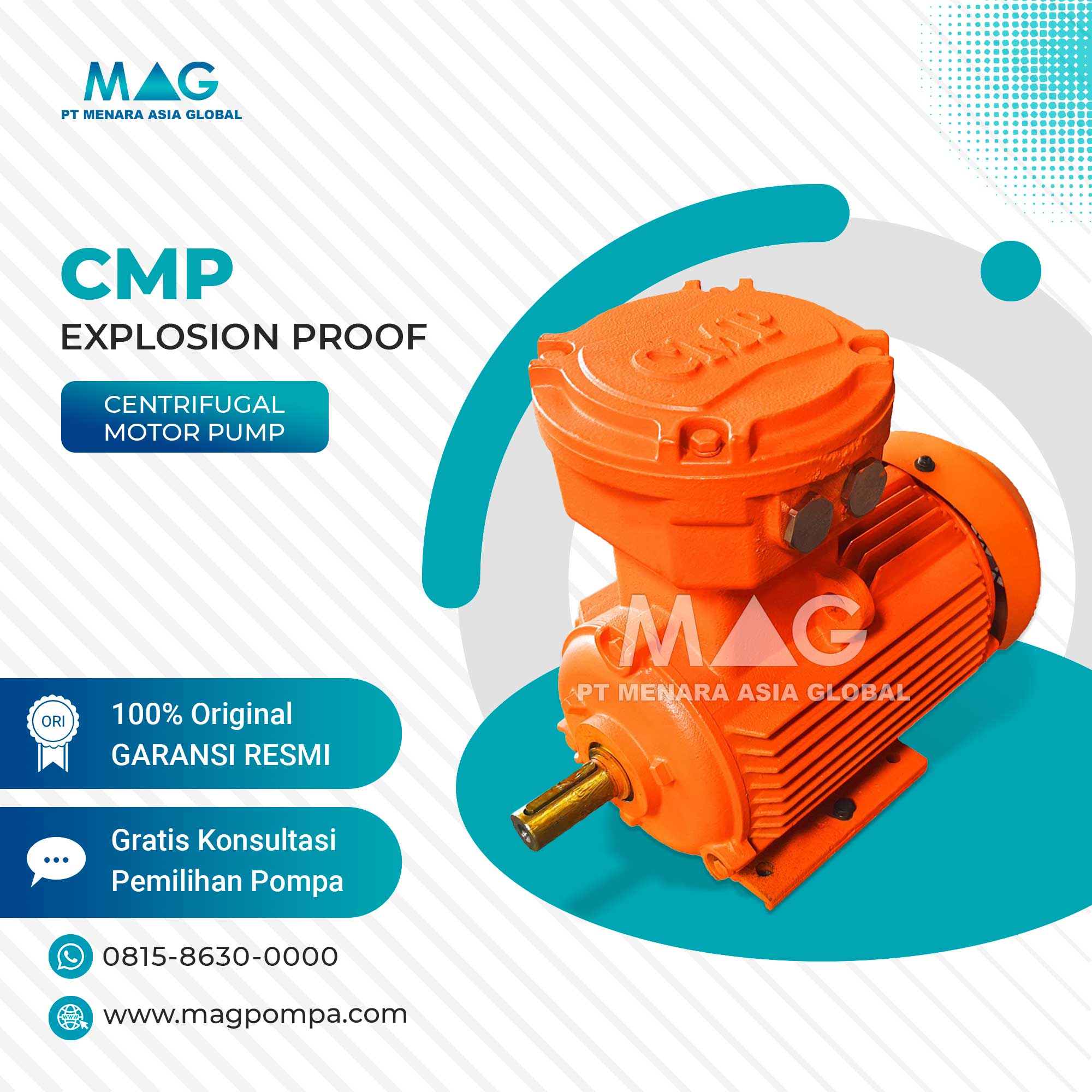 Motor CMP ini dirancang khusus dengan fitur anti ledakan, diperuntukkan sebagai mesin penggerak pompa sentrifugal yang dipasang pada lingkungan atau area dengan adanya gas atau bahan yang dapat meledak, tanpa menyebabkannya kerusakan internal motor itu sendiri.