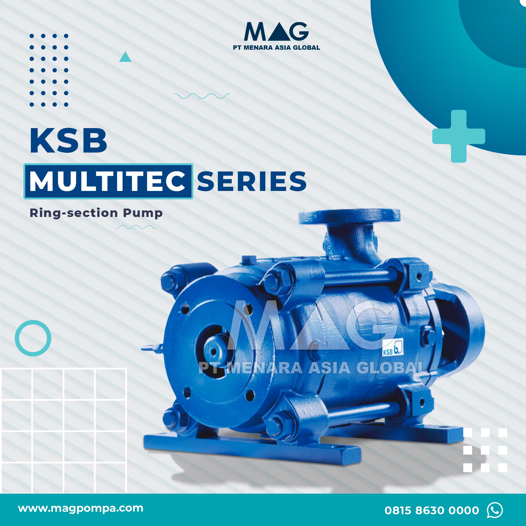 KSB Multitec series merupakan pompa sentrifugal horizontal bertingkat dalam desain penampang cincin, long-coupled atau close-coupled, dengan nosel hisap aksial atau radial, impeler radial cor, dan sistem kecepatan variabel yang dipasang di motor.