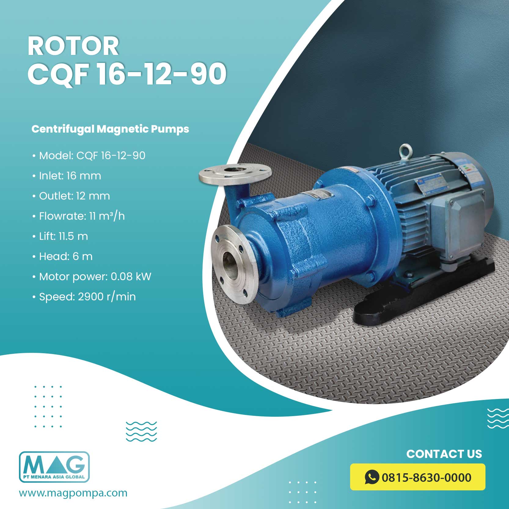 Pompa dengan segel magnet, CQF Series merupakan pompa yang memiliki struktur yang kompak, dirancang khusus untuk menangani cairan yang mudah bocor, mengandung racun, mudah terbakar dan meledak, yang sering menjadi masalah dalam industri petrokimia. Pompa Rotor CQF Series sangat dapat diandalkan karena mudah digunakan dan biaya perawatannya rendah, dengan keunggulan pompa bebas dari kebocoran dan polusi, ketahanan terhadap korosi, harga ekonomis dan penerapannya yang luas pompa ini sangat ideal untuk keperluan industri.