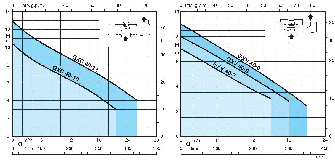 Calpeda type GX merupakan pompa submersible dengan impeller tunggal, pompa dibuat dengan bahan chrome-nickel stainless steel yang kokoh, pompa calpeda GX memiliki desain port pengiriman vertikal yang mampu menghemat ruang. Jenis pompa ini memiliki bebrapa varian diantaranya type GXC dengan impeler dua lintasan, dan type GXV dengan impeler vortex. Calpeda GC series mampu digunakan untuk memompa air kotor atau limbah yang mengandung partikel hingga 35mm.